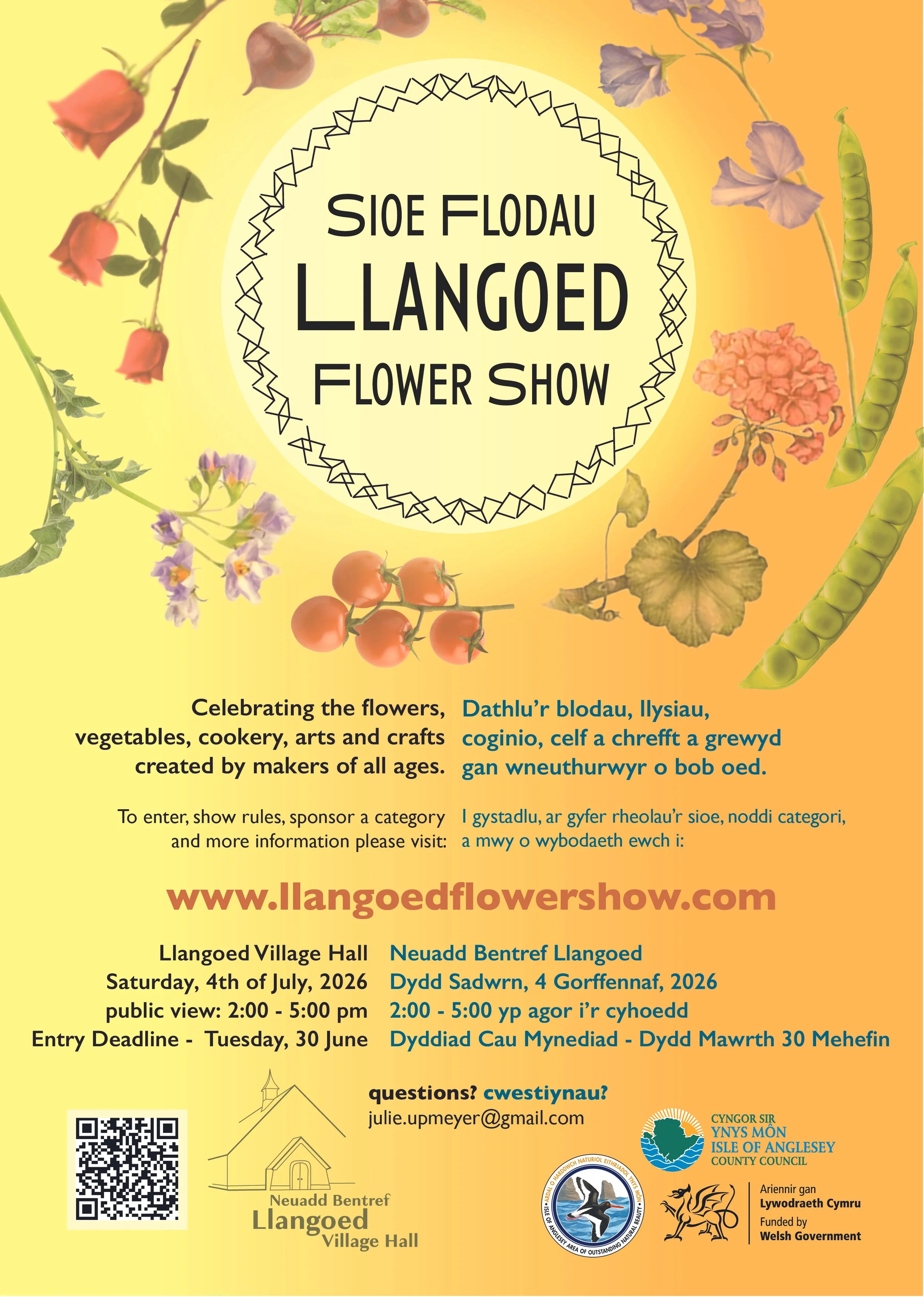 The Llangoed Flower Show is an annual event celebrating the flowers, vegetables, cookery, arts and crafts created by makers of all ages. Hosted for over 50 years in the historical Llangoed Village Hall, it brings together all those within and beyond the Seiriol ward on the beautiful Isle of Anglesey.